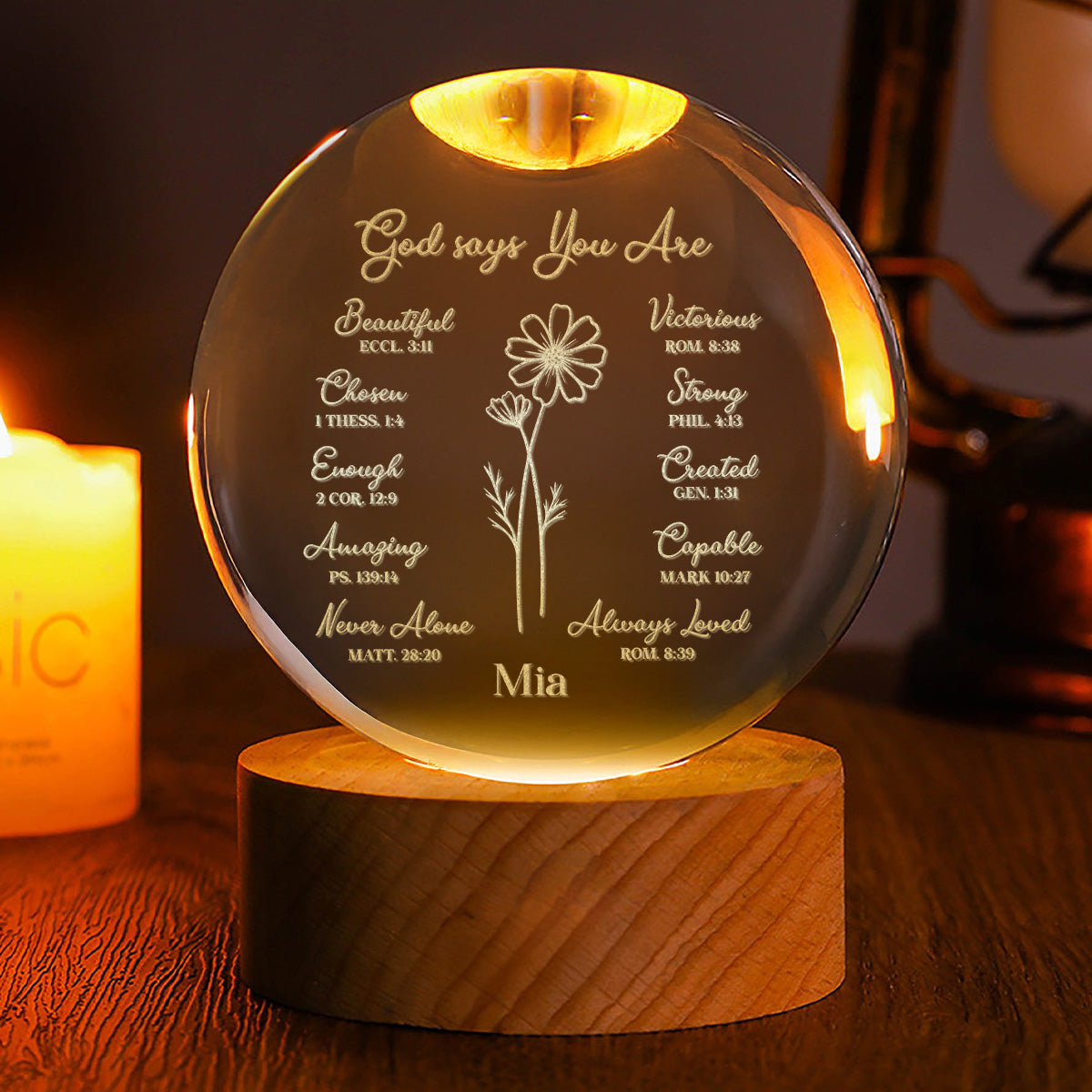 God Says You Are - Personalized Wooden Base Crystal Lamp