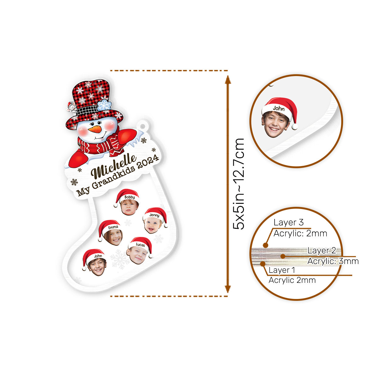 Personalized 3 Layered Christmas Shaker Ornament - Fun Holiday Ornament Brings a Festive Atmosphere to Your Home.