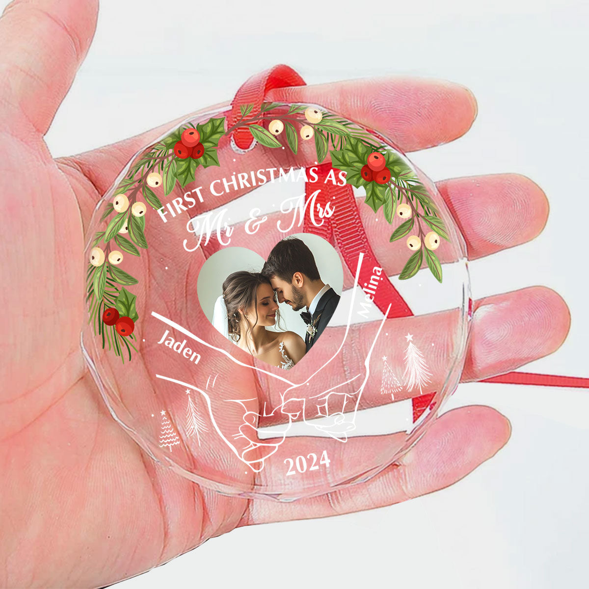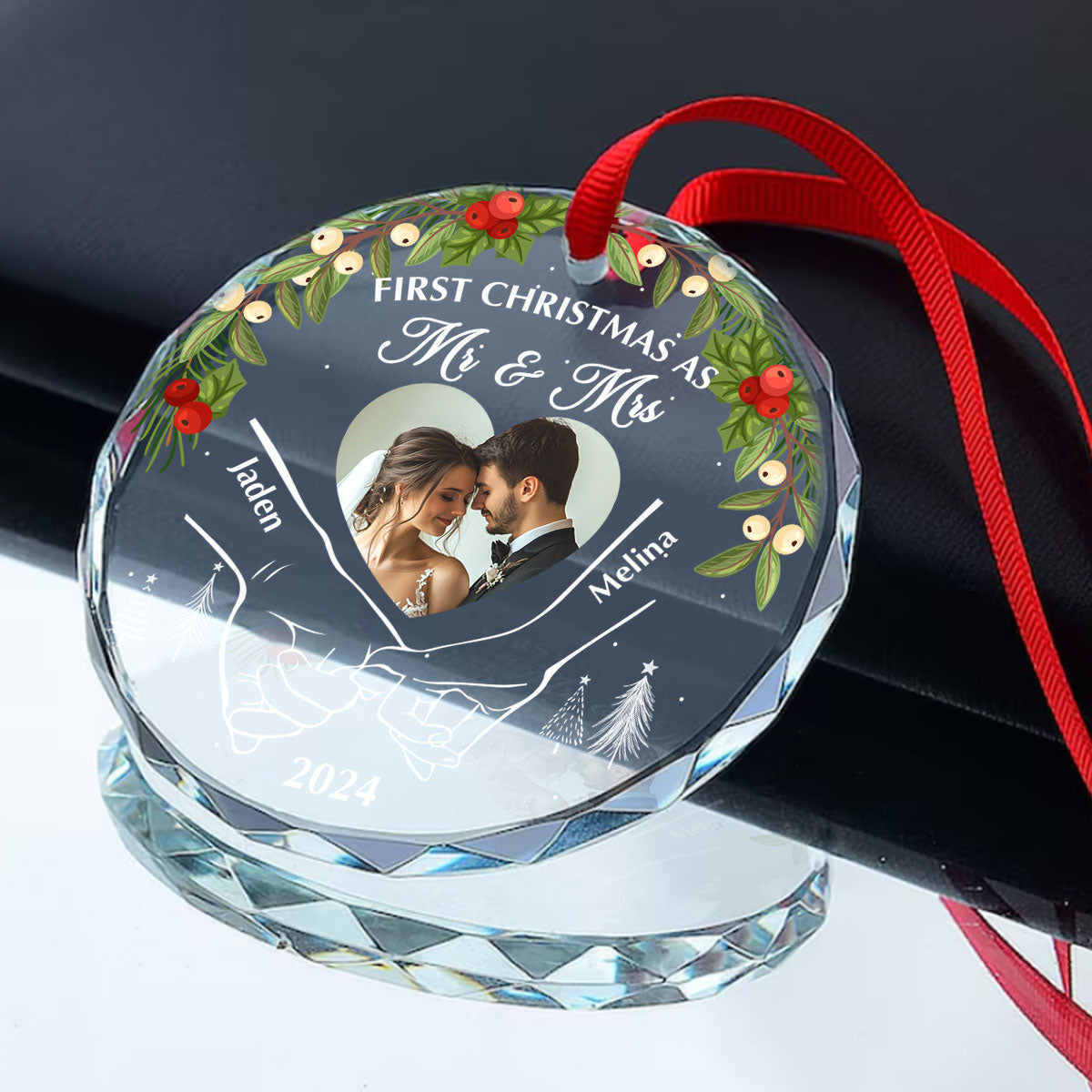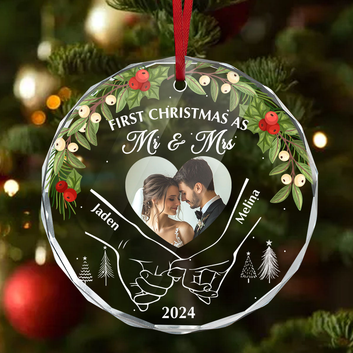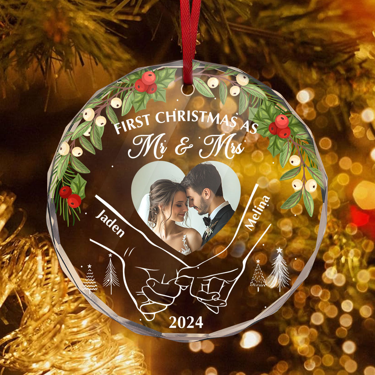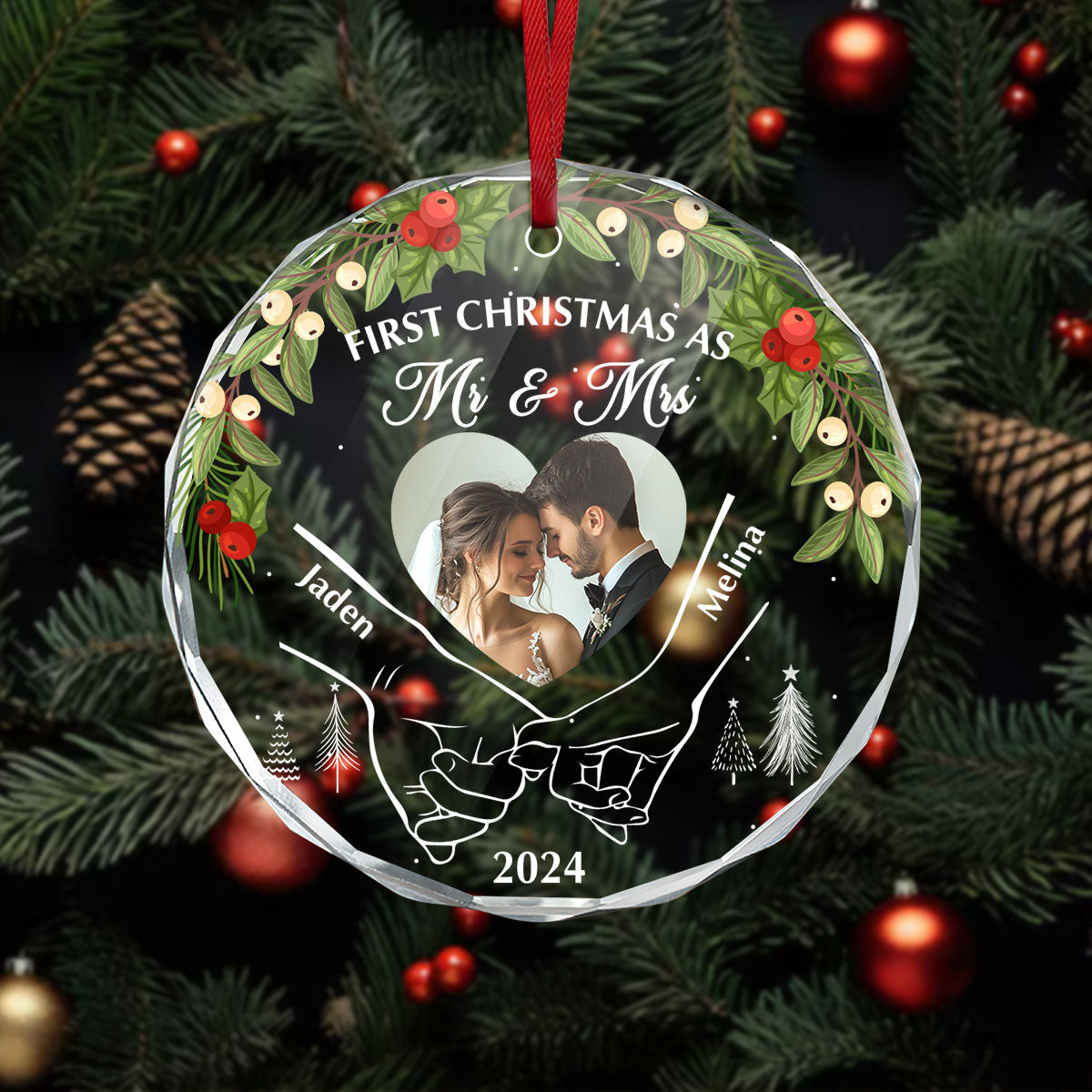 Holding Hands First Christmas Newlywed Couple - Personalized Custom Glass Ornament FCURGOPLEHA2229TA