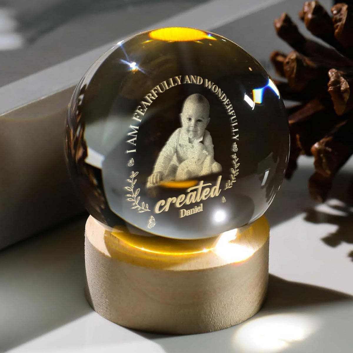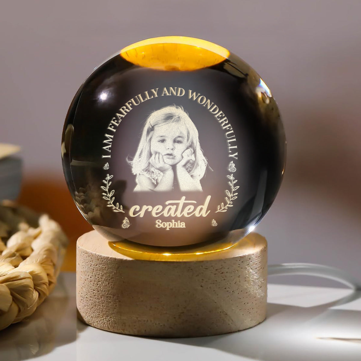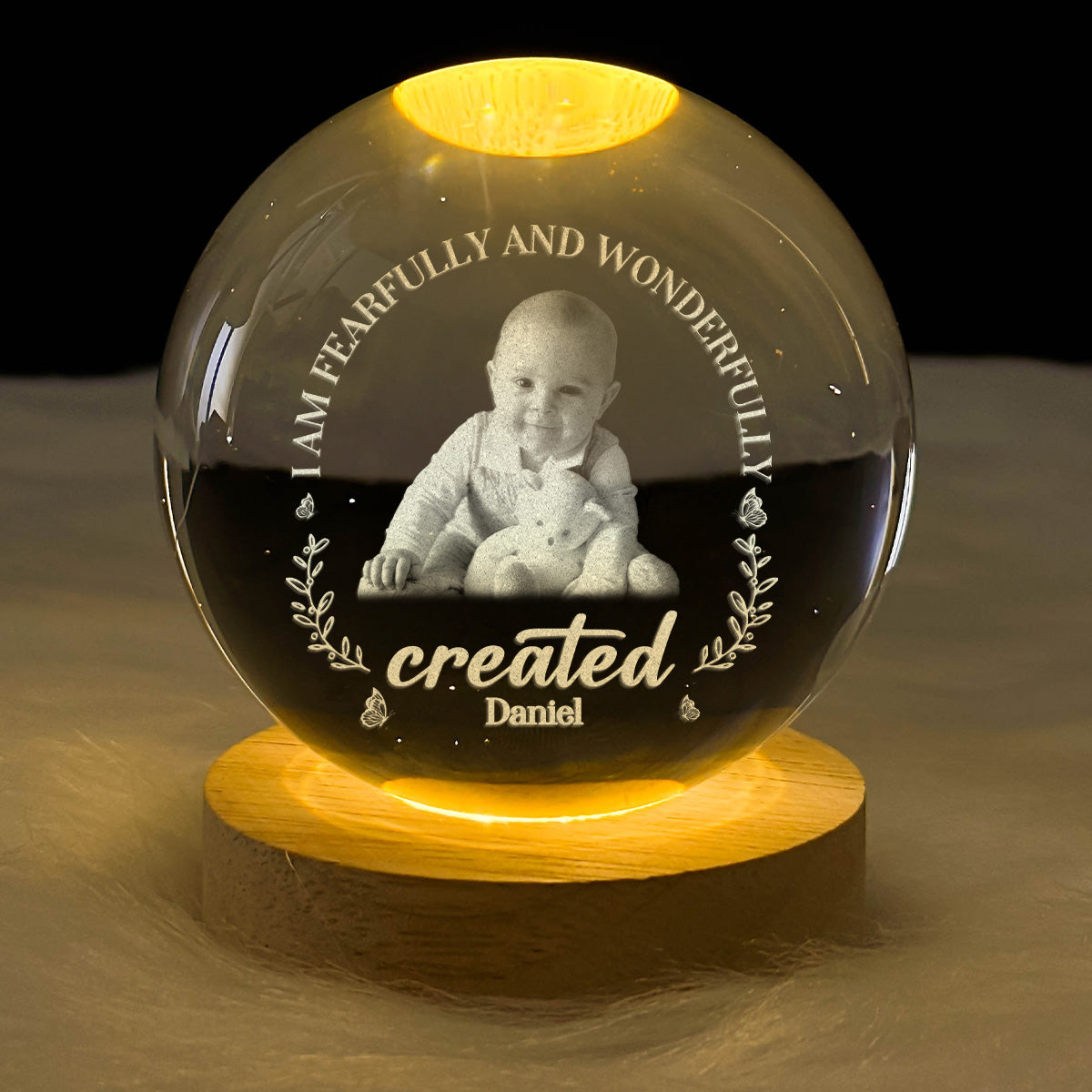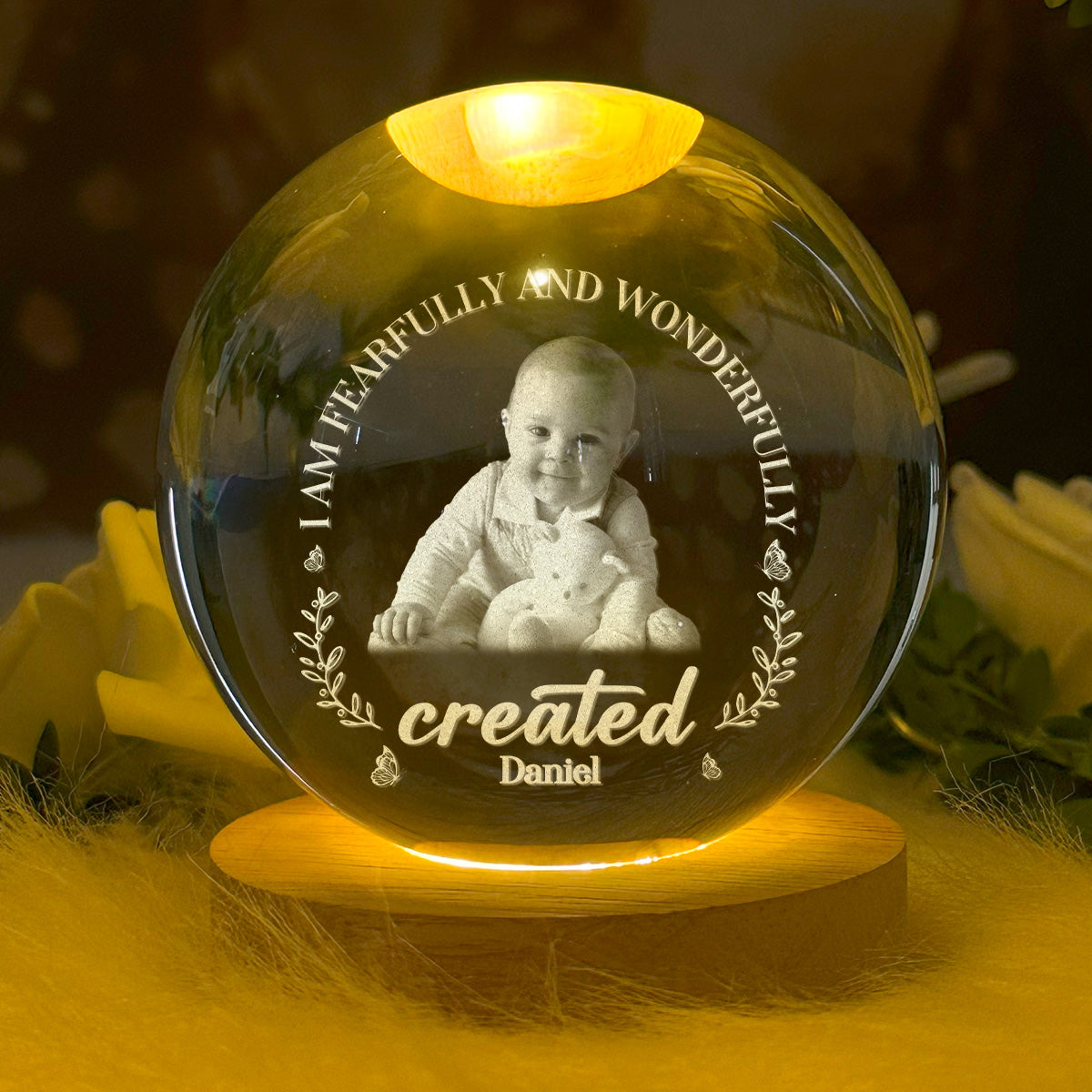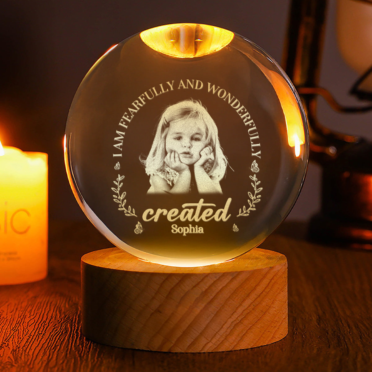 I Am Fearfully And Wonderfully Created - Personalized Wooden Base Crystal Lamp