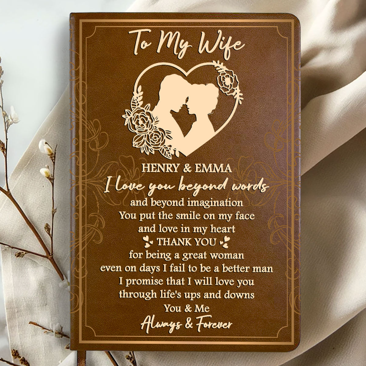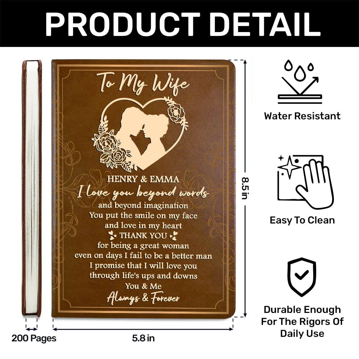 I Love You Beyond Words - Personalized Leather Cover Notebook