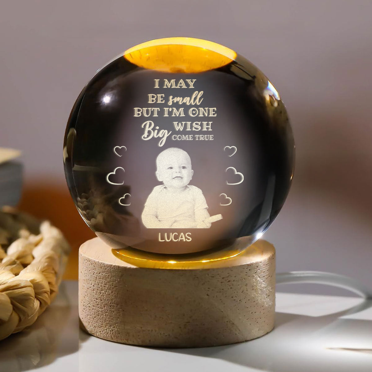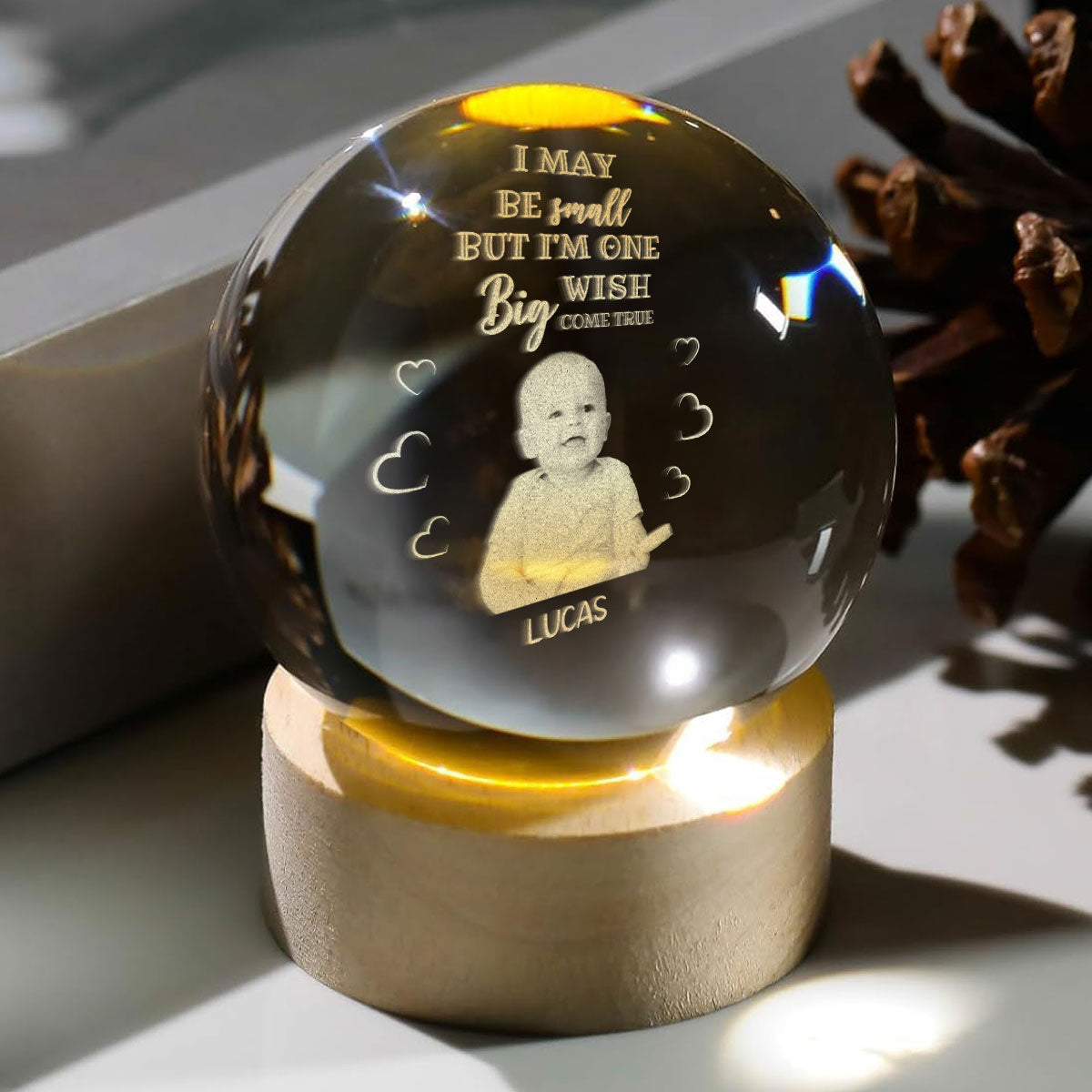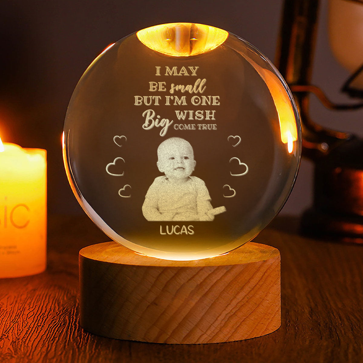 I May Be Small Baby - Personalized Wooden Base Crystal Lamp