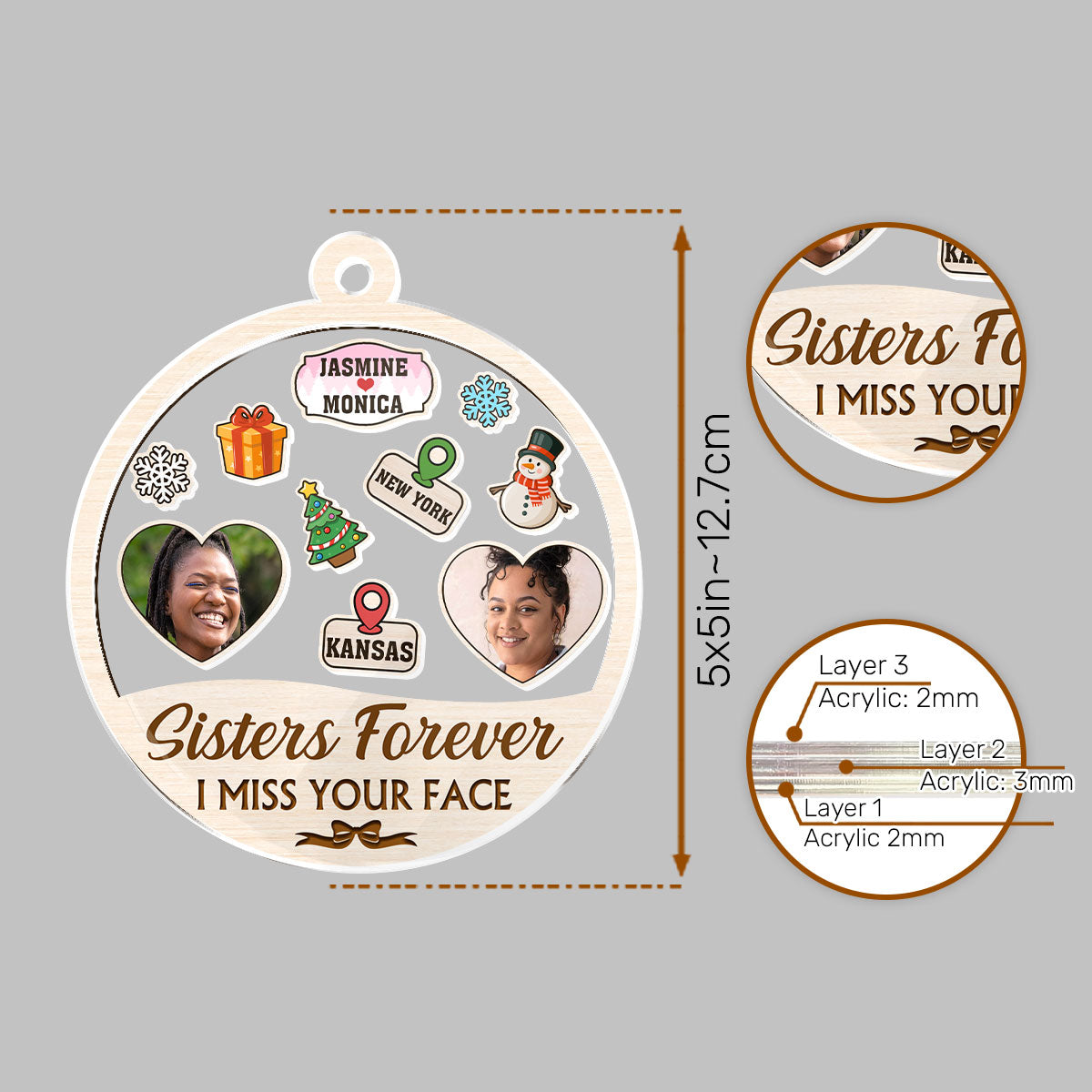 Personalized 3 Layered Christmas Shaker Ornament - Fun Holiday Ornament Brings a Festive Atmosphere to Your Home.