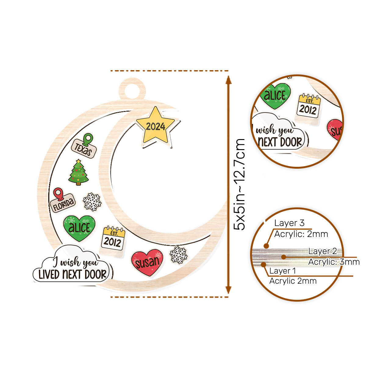 I Wish You Lived Next Door Besties - Personalized 3 Layered Christmas Shaker Ornament