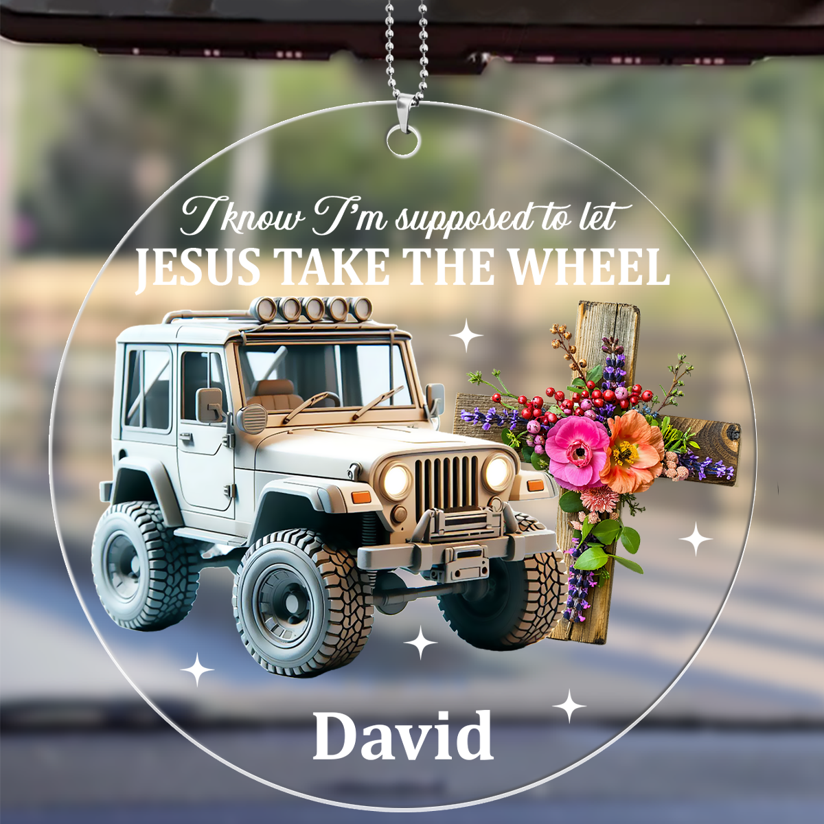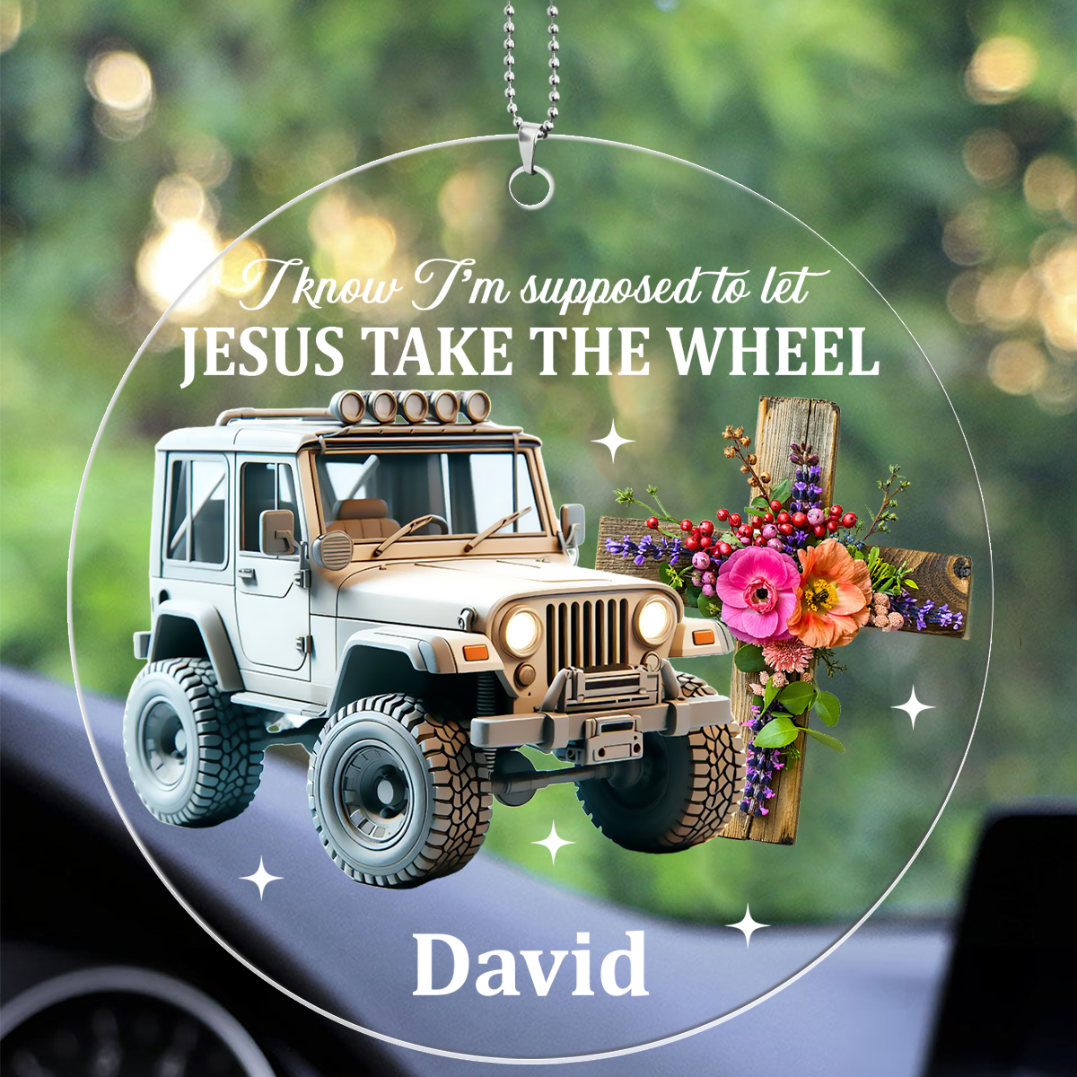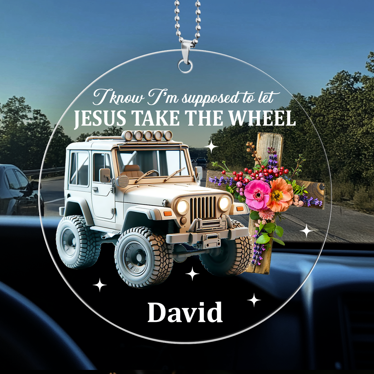 Let Jesus Take The Wheel - Personalized 1-Side Car Acrylic Hanging Ornament