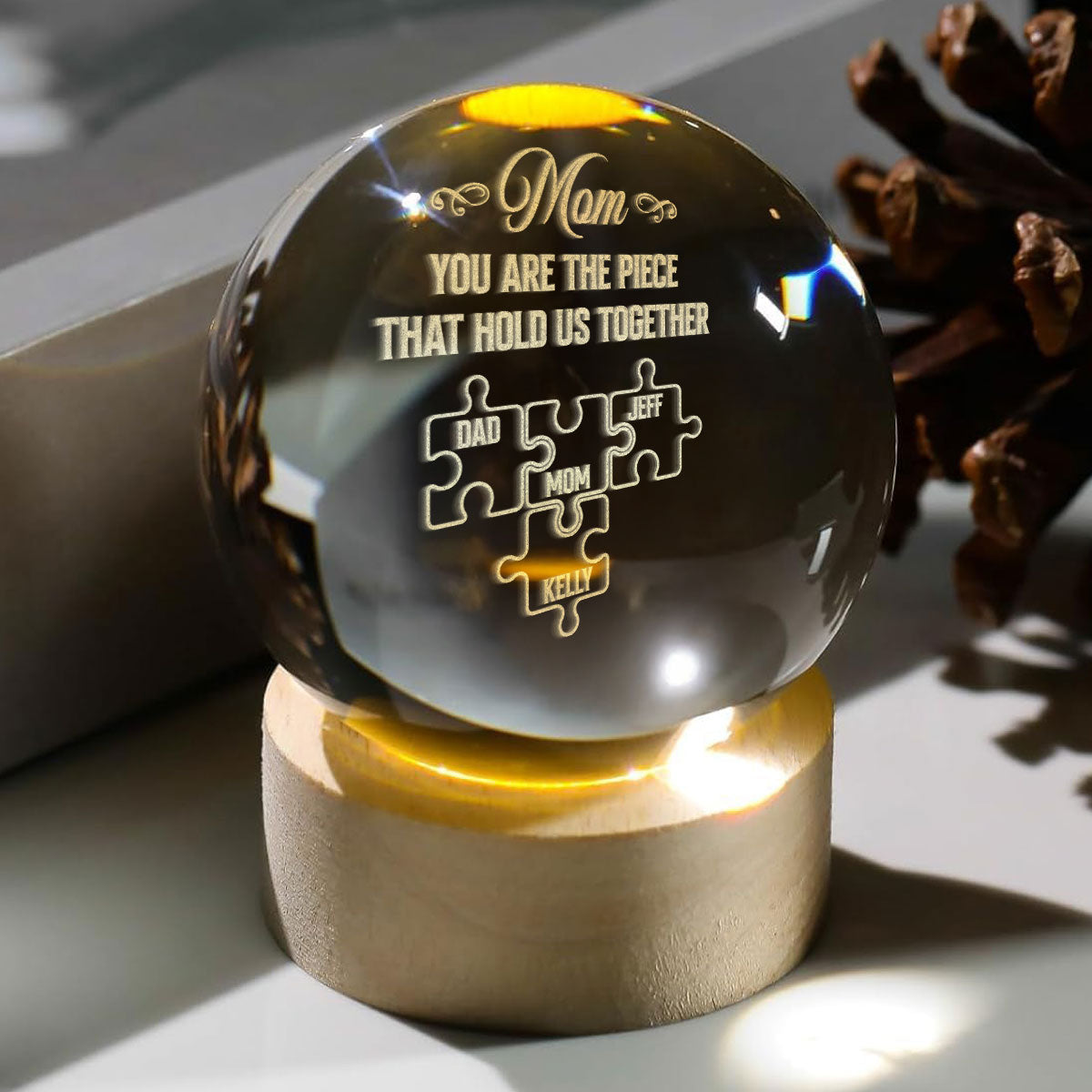 Mom You Are The Piece That Hold Us Together - Personalized Wooden Base Crystal Lamp