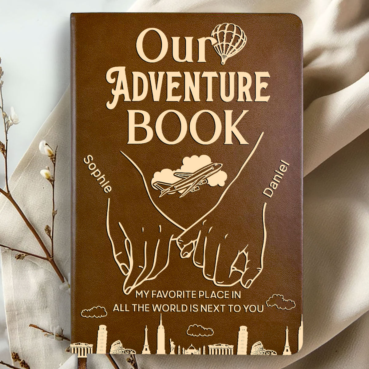 Our Adventure Book Couple - Personalized Leather Cover Notebook