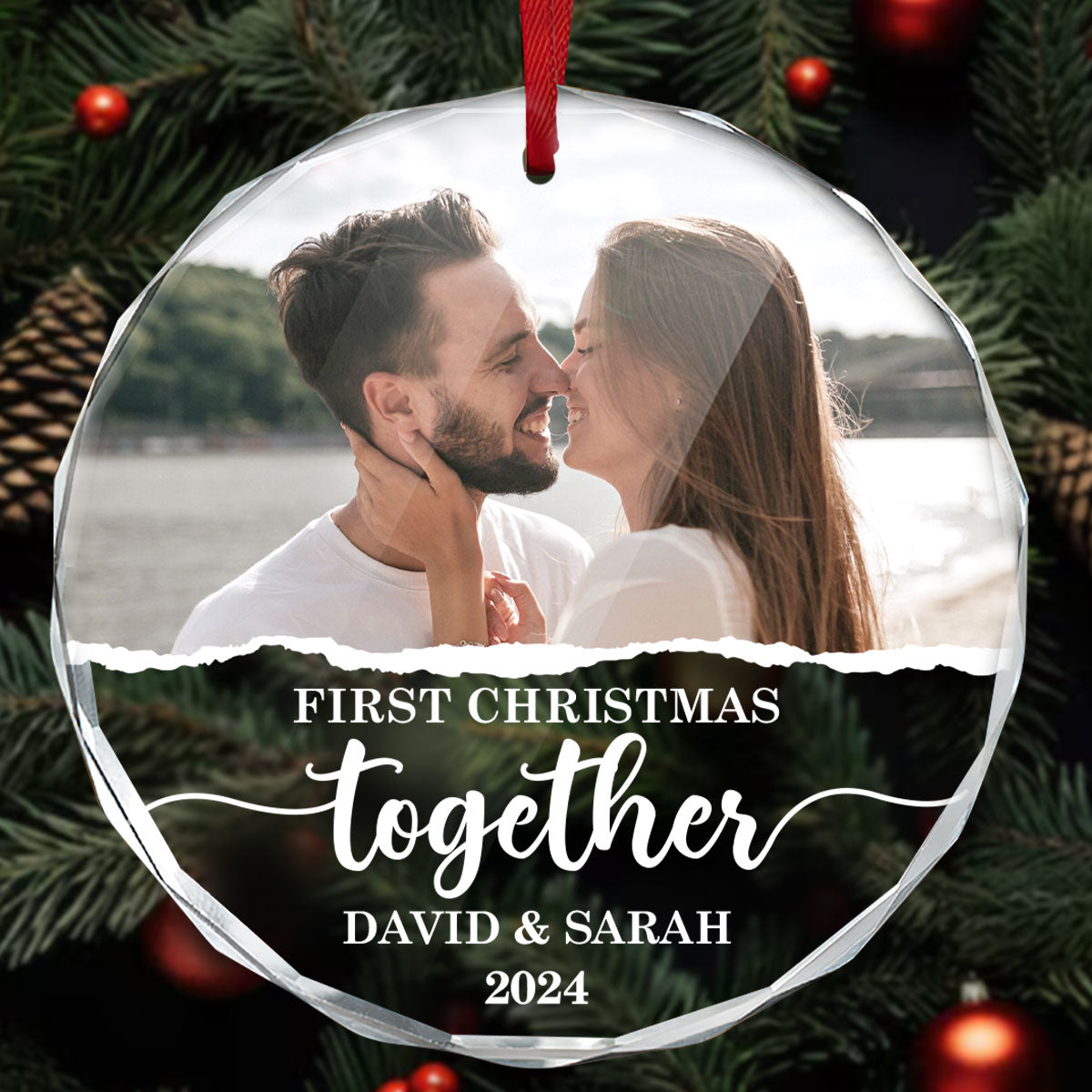 Our First Christmas Couple - Personalized Custom Glass Ornament FCURGOPLEHA2884T