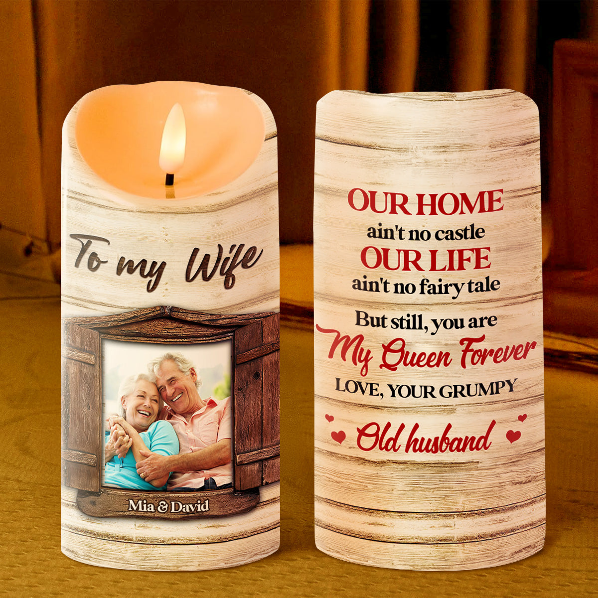 Our Home Ain't No Castle Old Couple - Personalized Flameless LED Candle