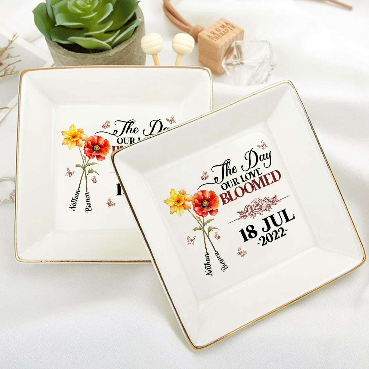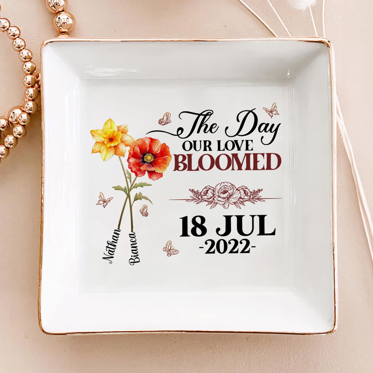 Our Love Bloomed Birth Flowers - Personalized Jewelry Dish