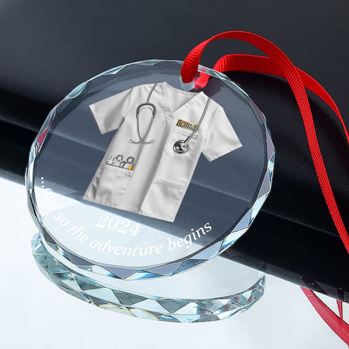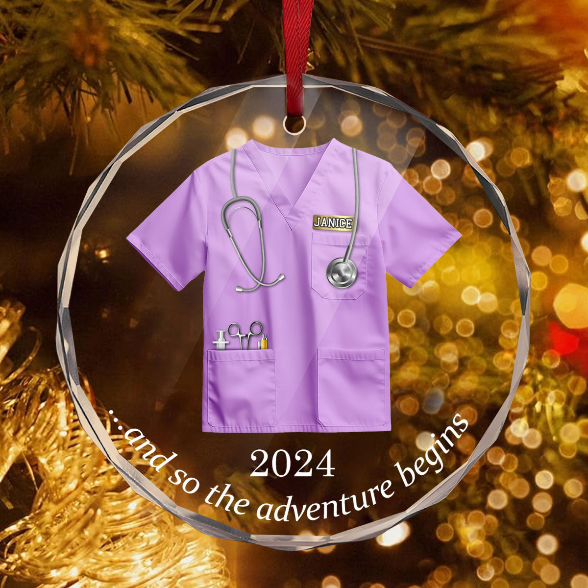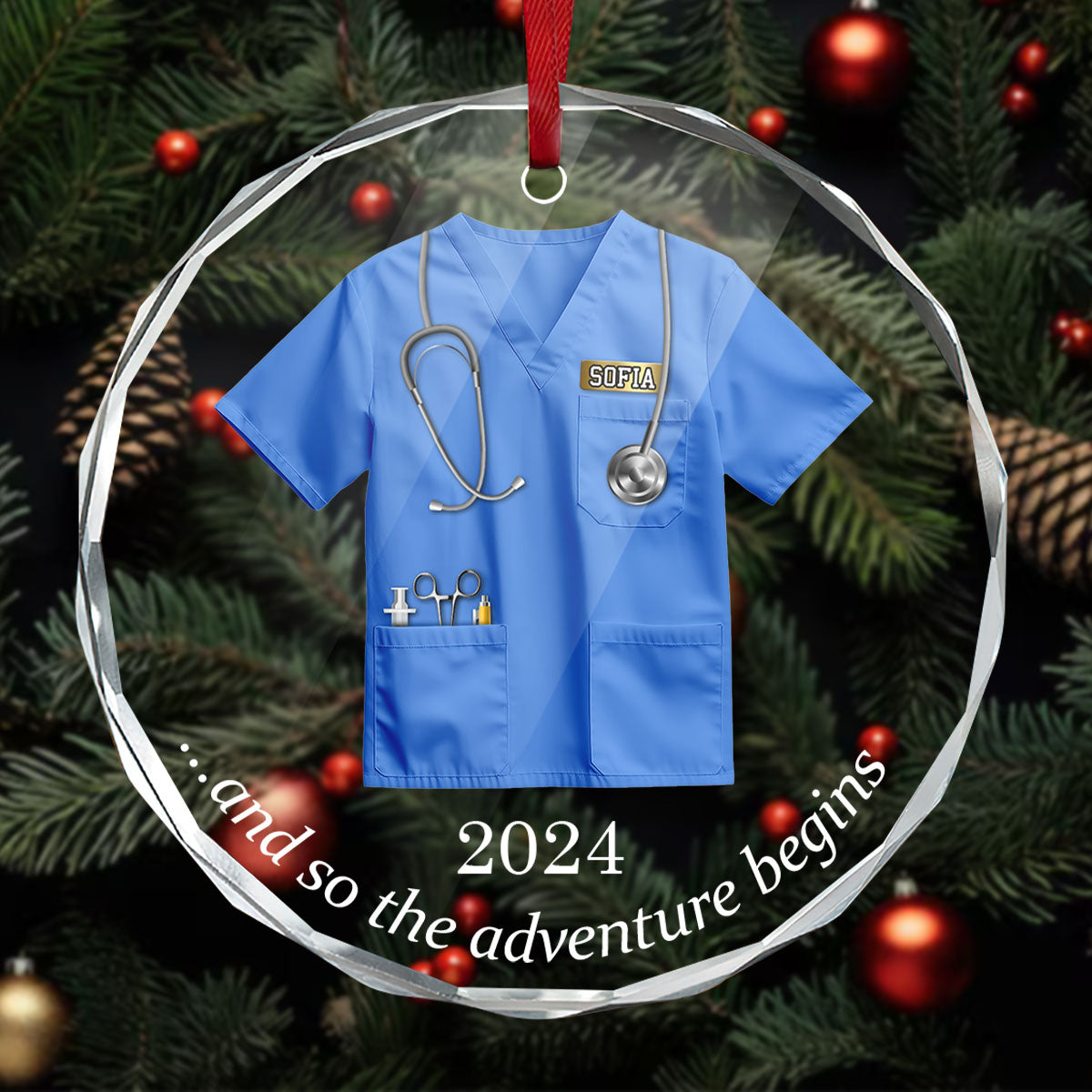 So The Adventure Begins Nurse's First Christmas - Personalized Custom Glass Ornament FCURGOPLEHA2588M