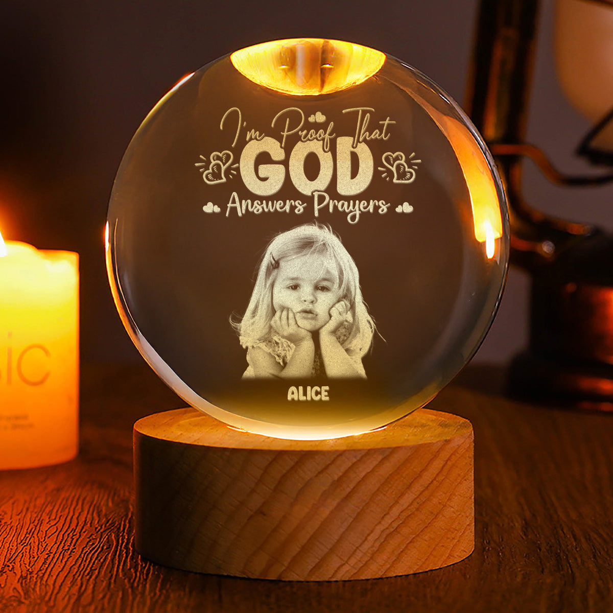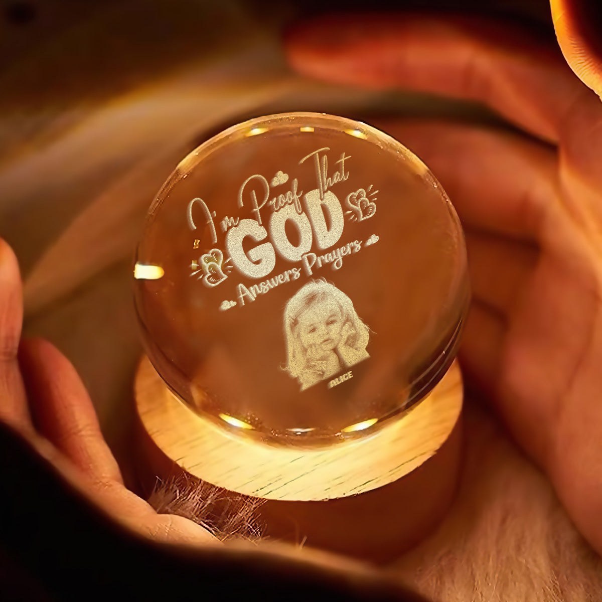 That God Answers Prayer Baby - Personalized Wooden Base Crystal Lamp