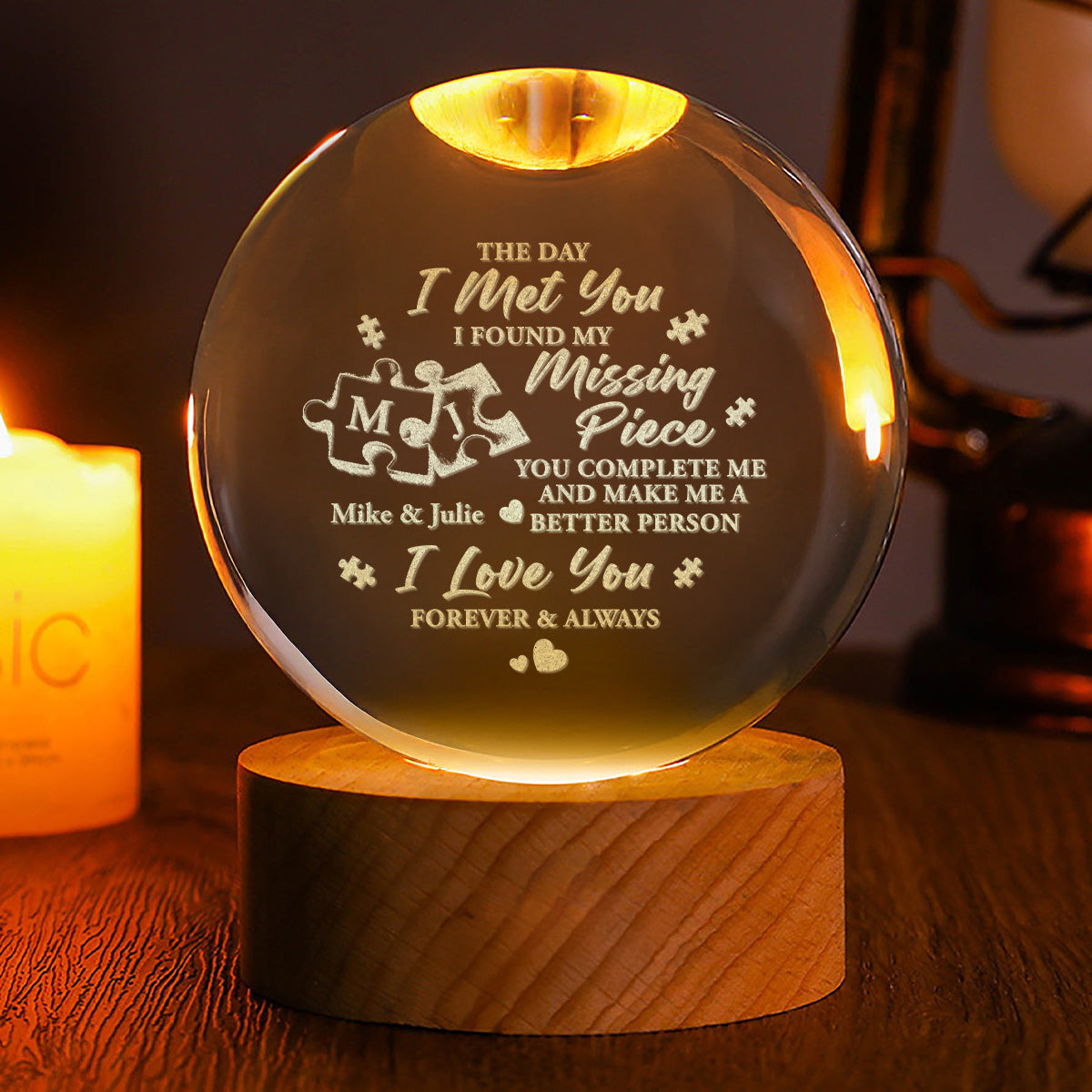 The Day I Met You I Found My Missing Piece - Personalized Wooden Base Crystal Lamp