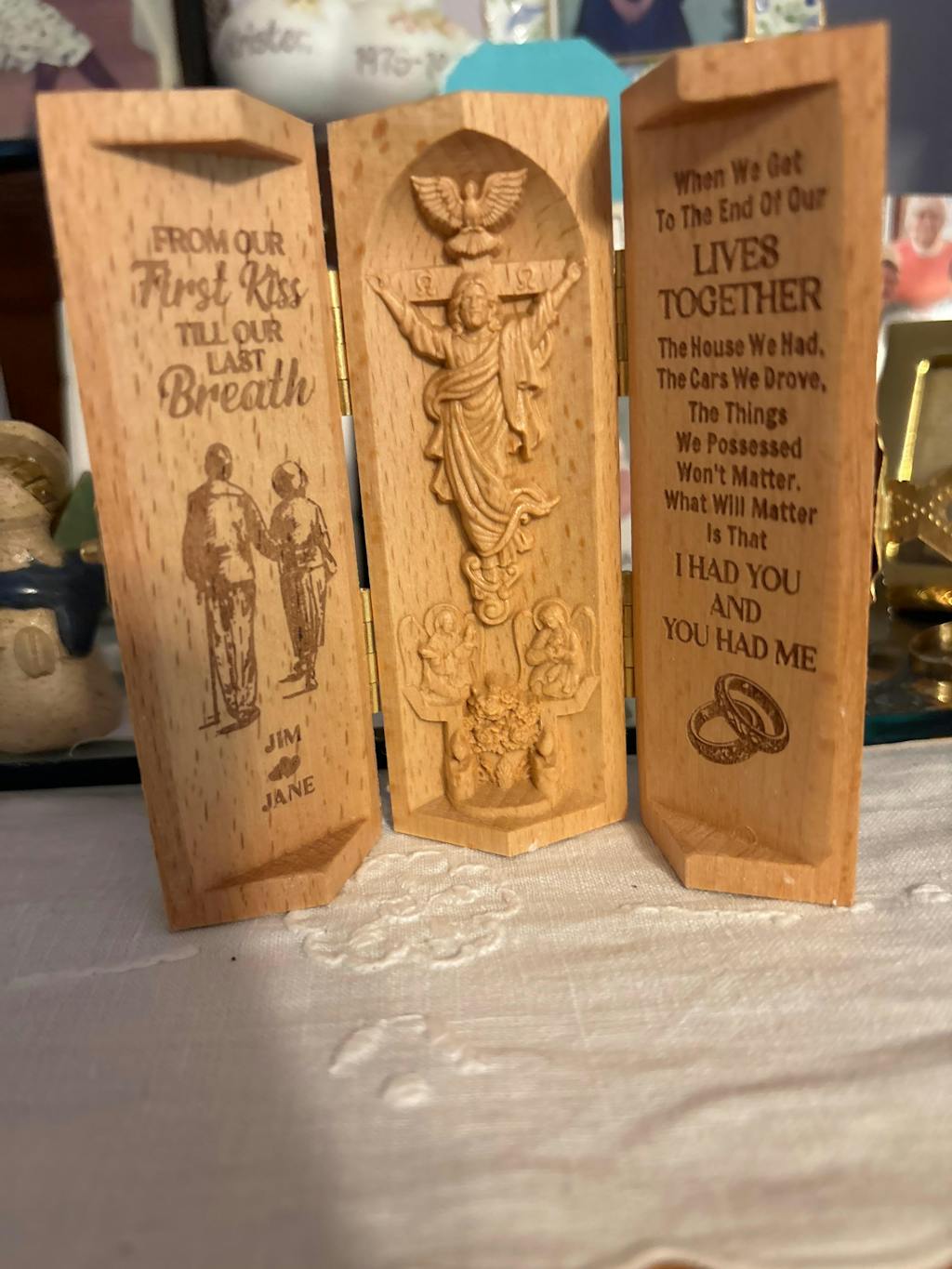 Am very pleased with what I ordered. Will never let it out of my sight. Brought tears to my eyes when I open package and actually saw and read the inscription.I lost my wife, my everything on March 2, 2025. She will be dearly missed and always loved.