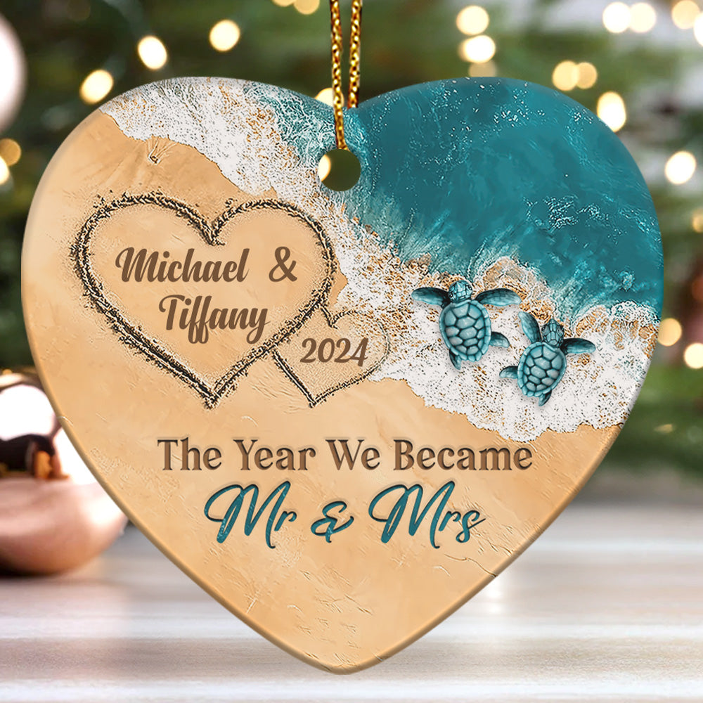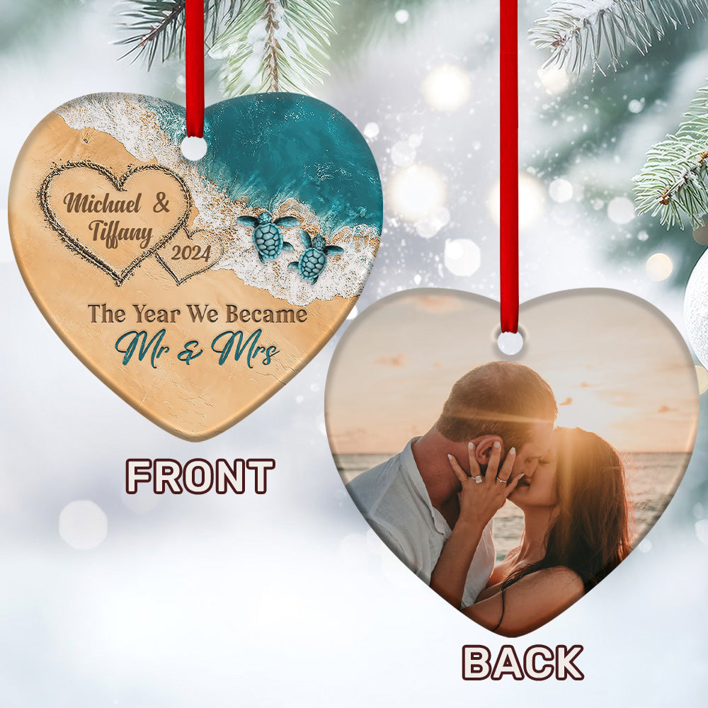 The Year We Became Mr & Mrs - Personalized Heart Shaped Ceramic Ornament FCHCOLETN2650TA