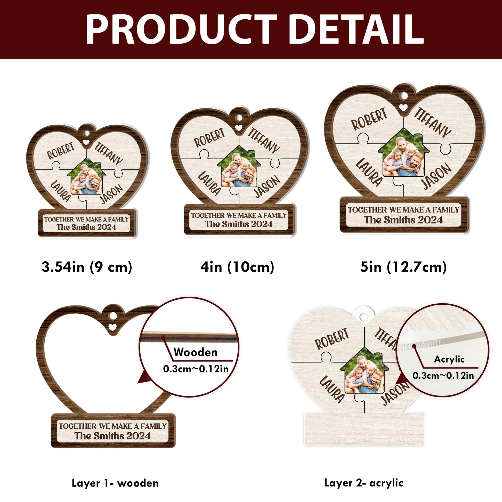 - Stylish & Durable: Enhance your holiday decor with this premium wood and polished acrylic ornament. Available in 3 sizes: 3.54 inches, 4 inches, and 5 inches.