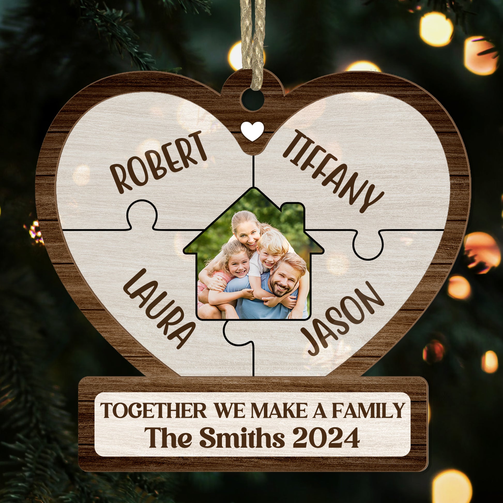 Together We Make A Family Christmas - Personalized Wood & Acrylic Ornament FCWAOLETN2602M