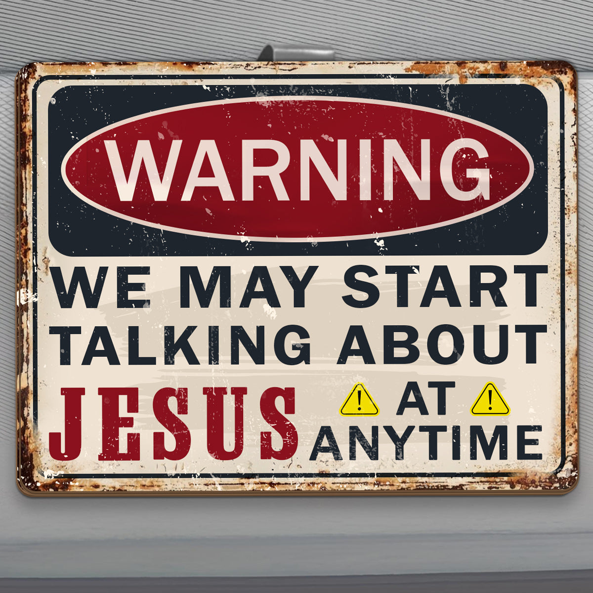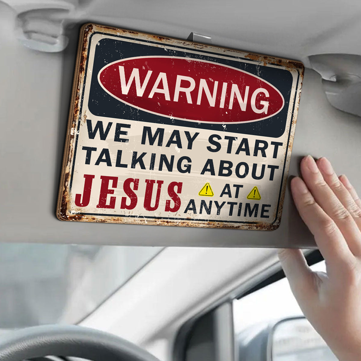 Warning May Start Talking About Jesus At Any Time - Car Visor Clip FCCVCLEHA2040TA
