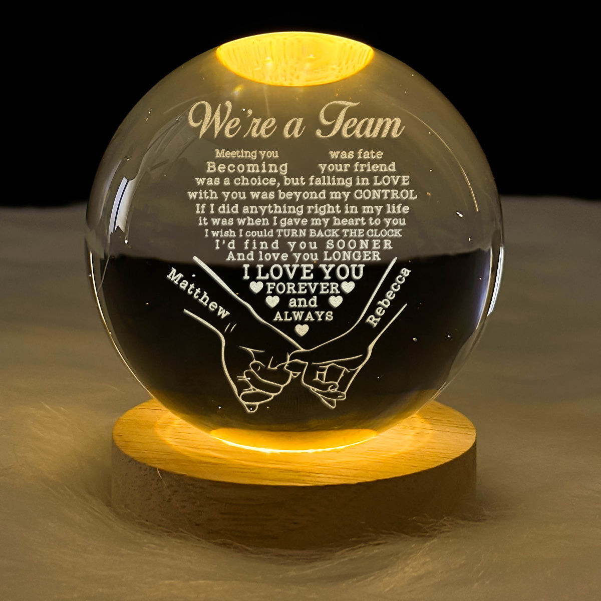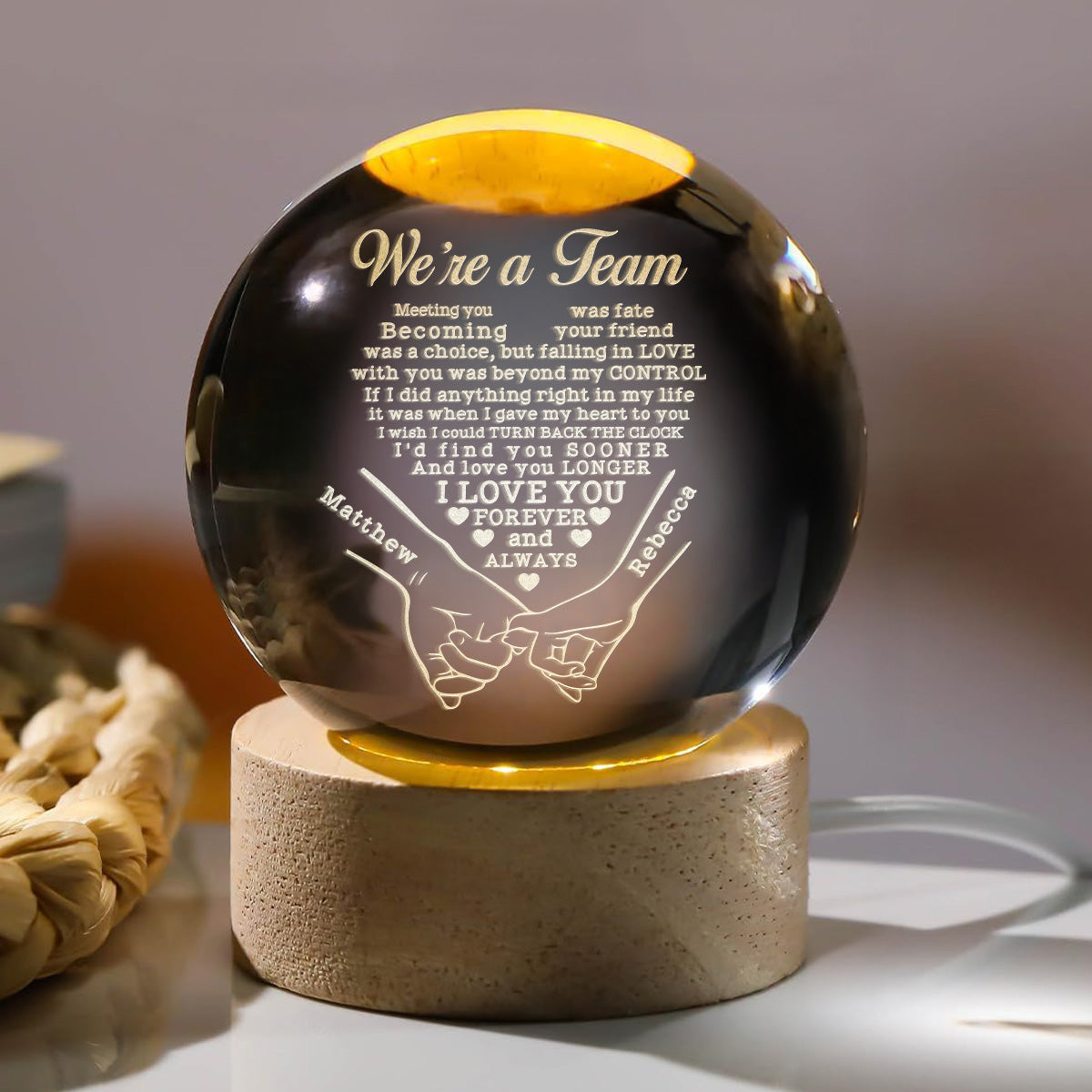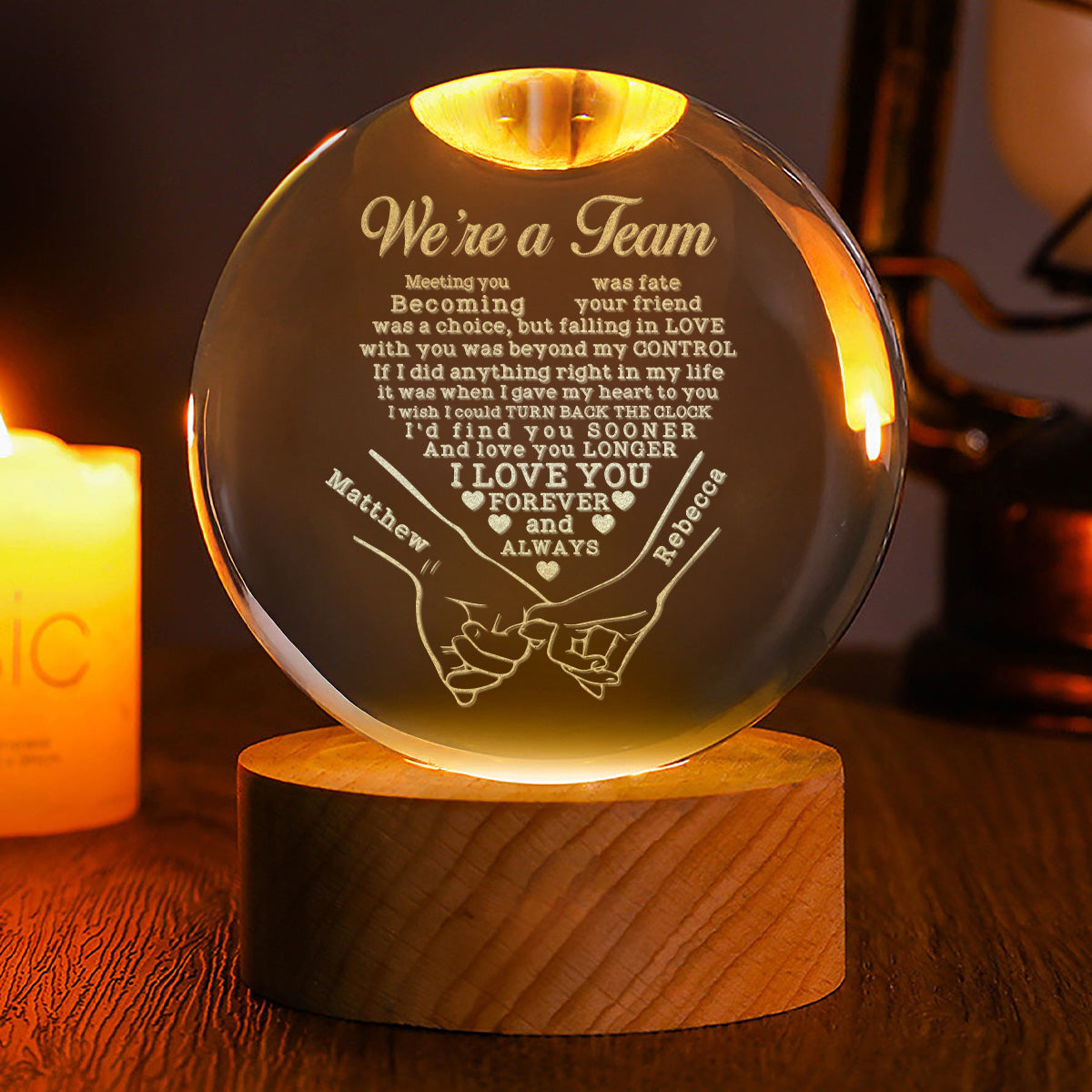 We're A Team - Personalized Wooden Base Crystal Lamp