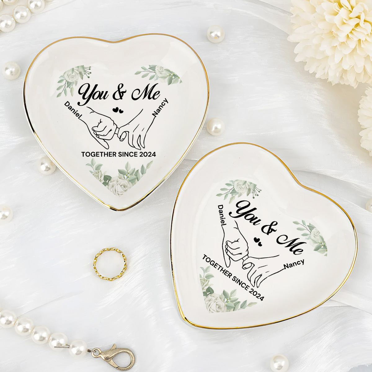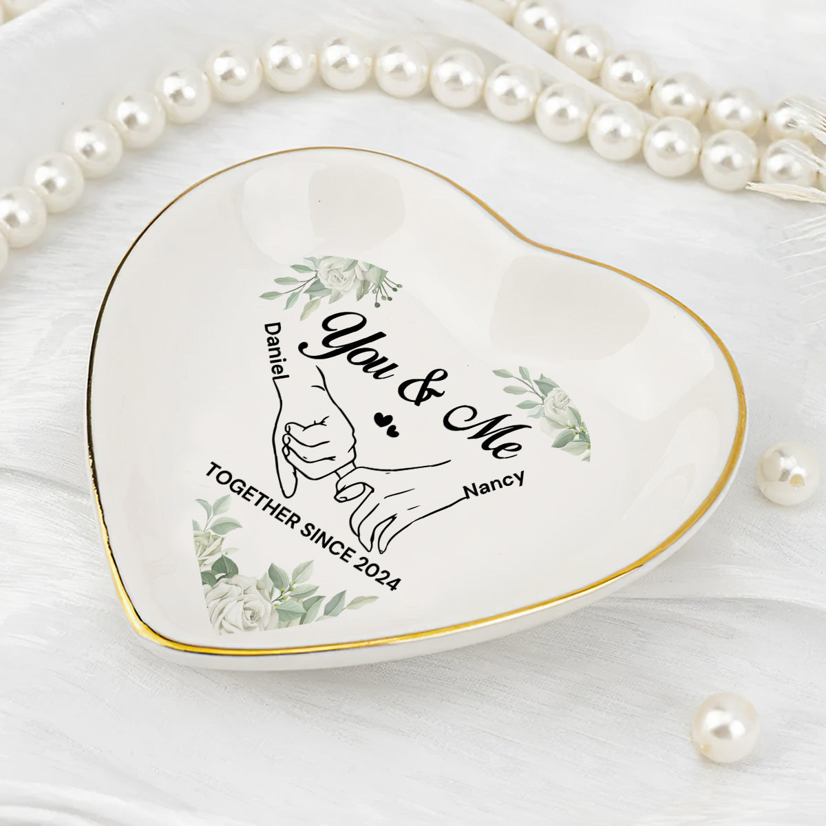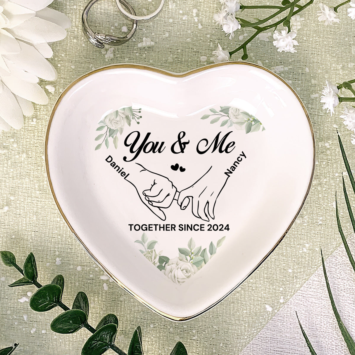 You & Me Together Gift For Wife, Girl Friend - Personalized Heart Shaped Jewelry Dish FCSHSCRDLETN2603L