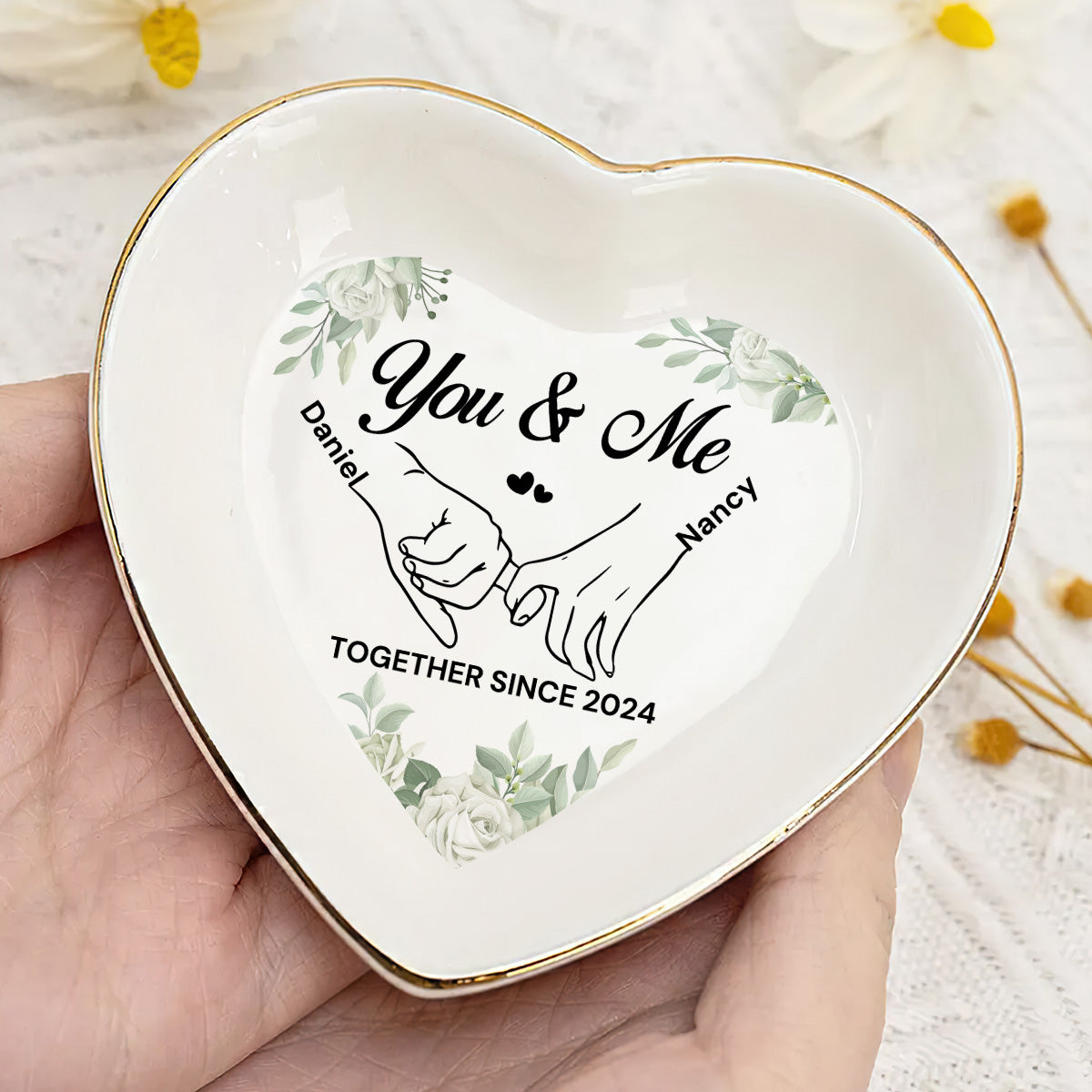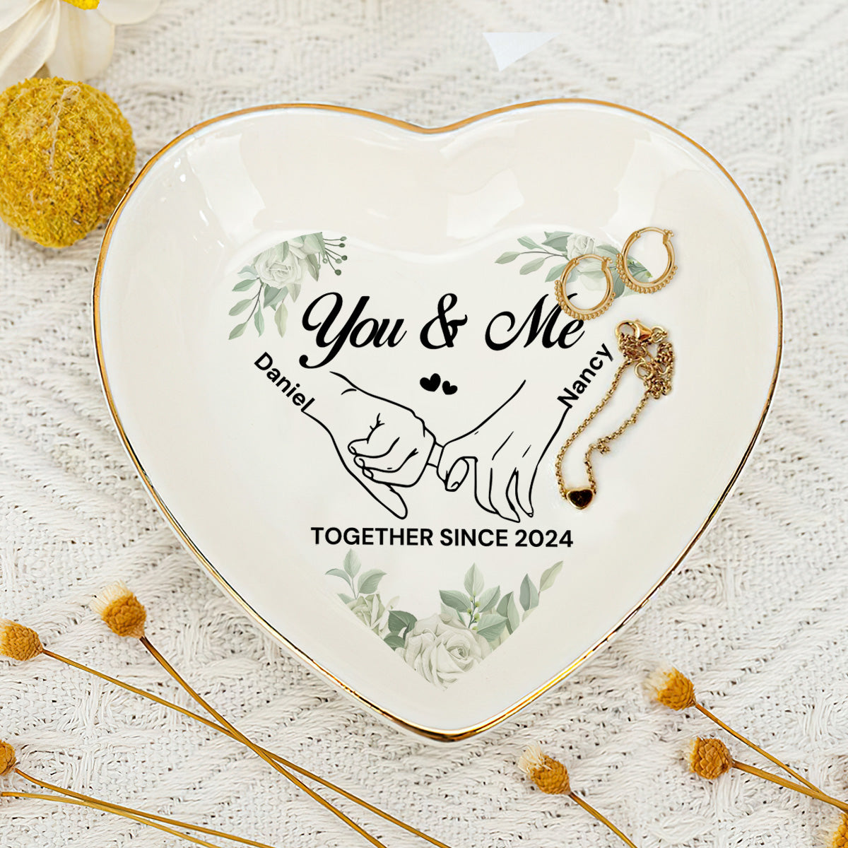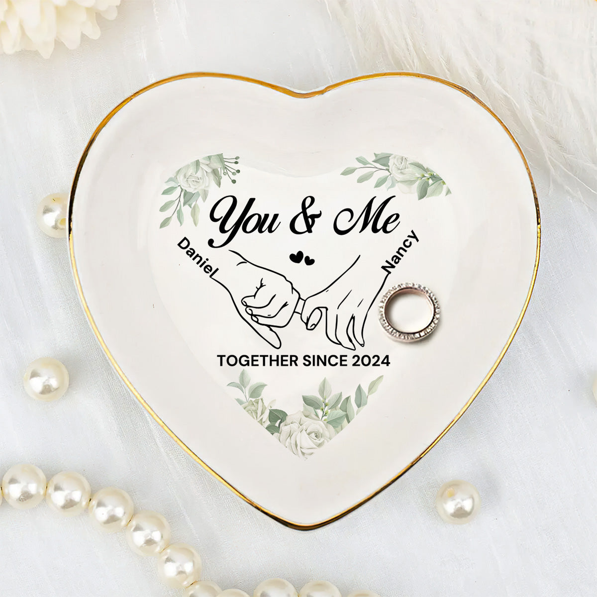 You & Me Together Gift For Wife, Girl Friend - Personalized Heart Shaped Jewelry Dish FCSHSCRDLETN2603L