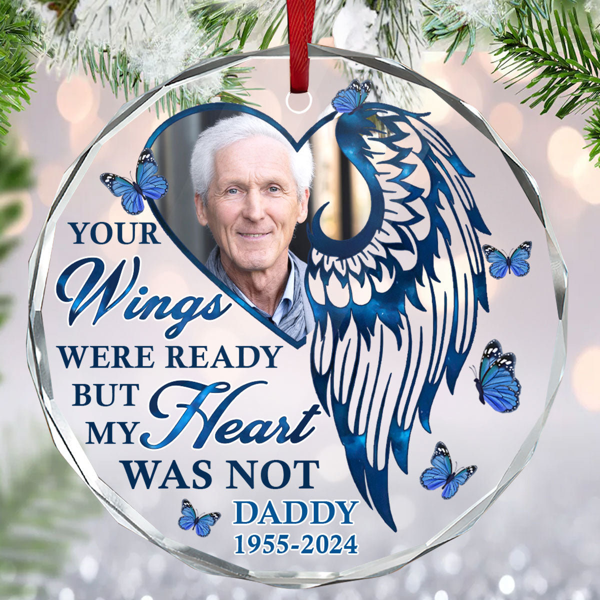 Your Wings Were Ready But My Heart Was Not - Personalized Custom Glass Ornament